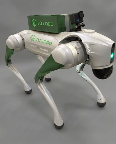 Ten en cuenta que el robot es color gris, por lo que letras y logo deben ser claros y con buen contraste.